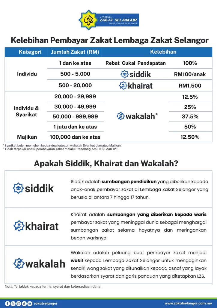 Pembayar zakat melalui LZS layak menerima rebat cukai pendapatan.